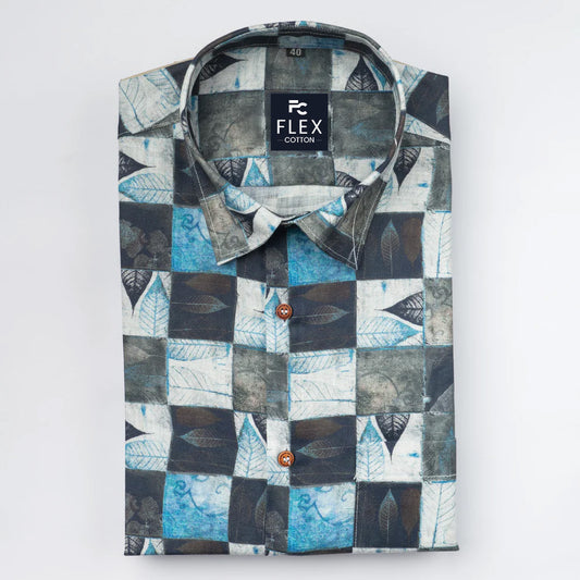 Blue Black Color Leaf Moroccan Printed Shirt For Men's