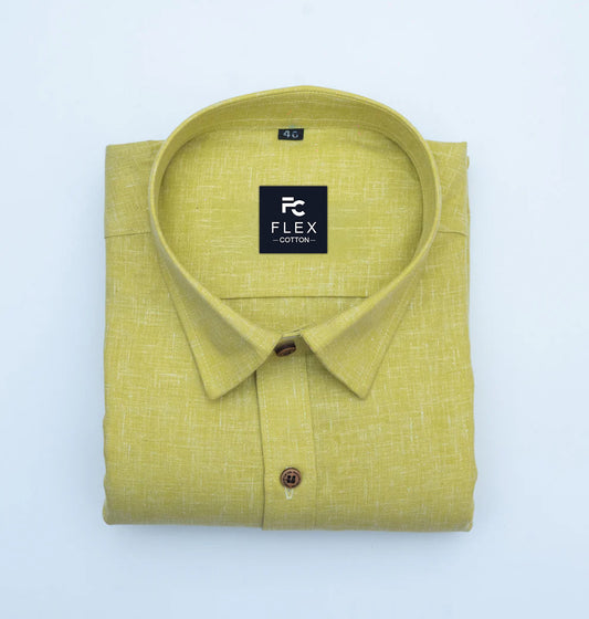 Dark Yellow Color Linen Fill Formal Cotton Shirt For Men's