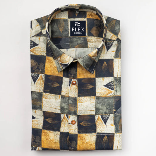Golden Black Color Leaf Moroccan Printed Shirt For Men's