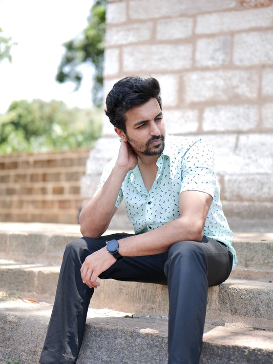 Rama Green Color Satin Mercerised Cotton Shirts For Men