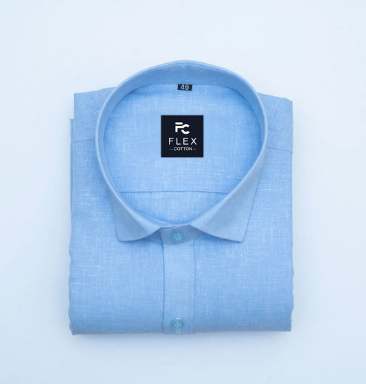 Sky Blue Color Linen Fill Formal Cotton Shirt For Men's