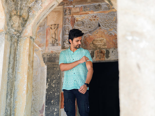 Sky Blue Color Mercerised Cotton Shirt For Men