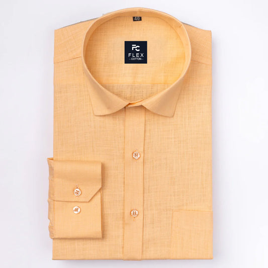 Dark Yellow Color Linen Fill Formal Cotton Shirt For Men's