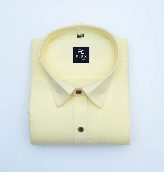 Light Yellow Color Linen Fill Formal Cotton Shirt For Men's