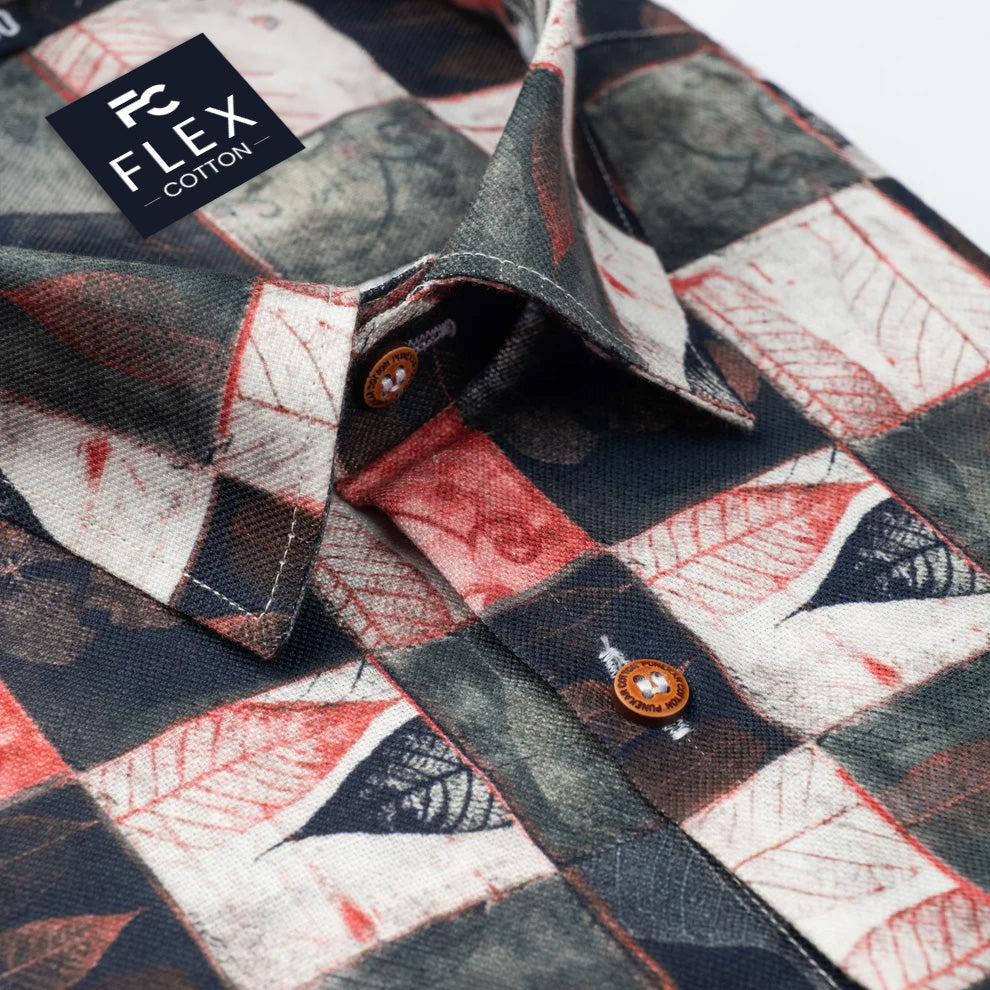 Light Red Black Color Leaf Moroccan Printed Shirt For Men's
